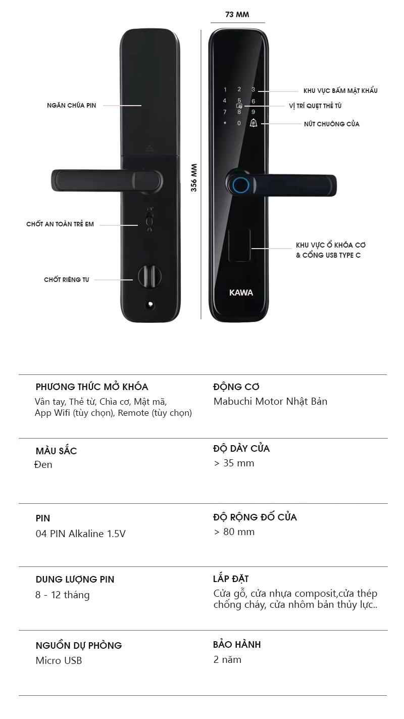 Model Khóa K204 được nhiều khách hàng yêu thích nhờ thiết kế hiện đại cùng đầy đủ các tính năng tiện lợi. K204 được trang bị các tính năng mở cửa: Vân tay, thẻ từ, chìa cơ, mật mã.