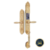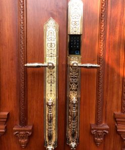 • Chất liệu Đẳng Cấp: Toàn bộ thân khóa được đúc từ Hợp kim nguyên khối, với bề mặt được mạ màu Vàng 24K tinh xảo, thể hiện rõ nét phong cách quý tộc Châu Âu. Các chi tiết hoa văn chạm nổi, tay nắm uốn lượn được chế tác cực kỳ tỉ mỉ.
